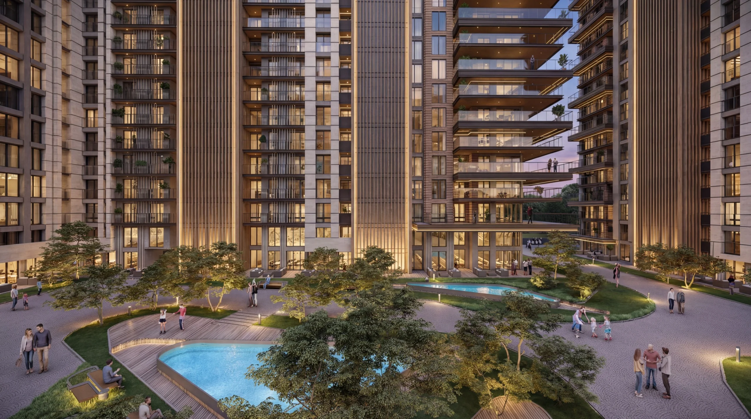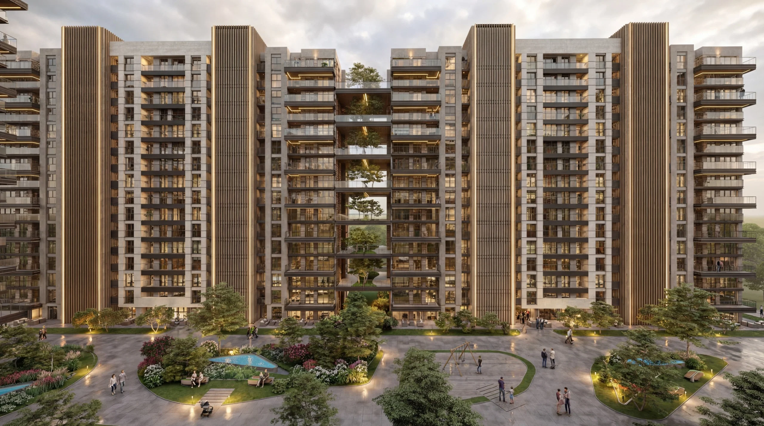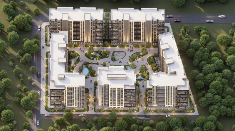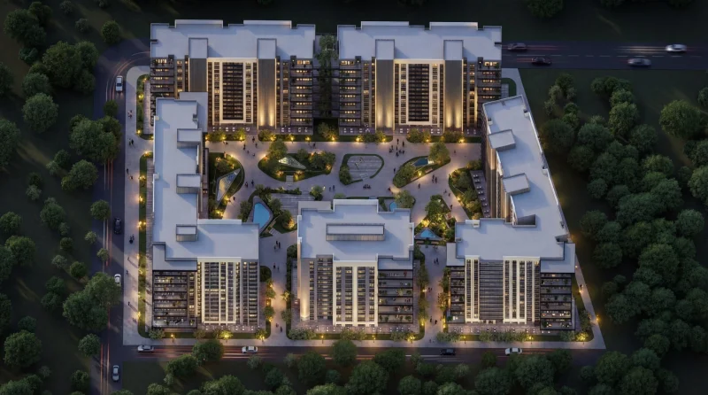 🌿 Doğanın Kalbinde Modern Mimari: Blokların çevrelediği devasa iç avlusu ve peyzaj alanlarıyla Grande Yaşamkent, size şehrin içinde saklı bir cennet sunuyor. Modern dış cephe tasarımı ve gökyüzüyle buluşan kat bahçeleri, betonun soğukluğunu değil, yeşilin huzurunu evinize taşıyor.